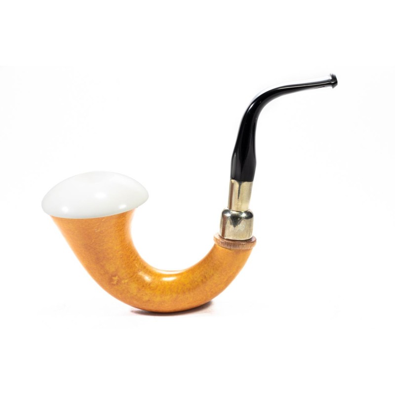 CPW Calabash Liscia Naturale, Colore: Marrone Chiaro, Cap Liscio in Schiuma Di Mare, doppia Vera in Argento e Radica, senza filtro, custodia rigida in pelle rossa a misura. Made in Turkey.