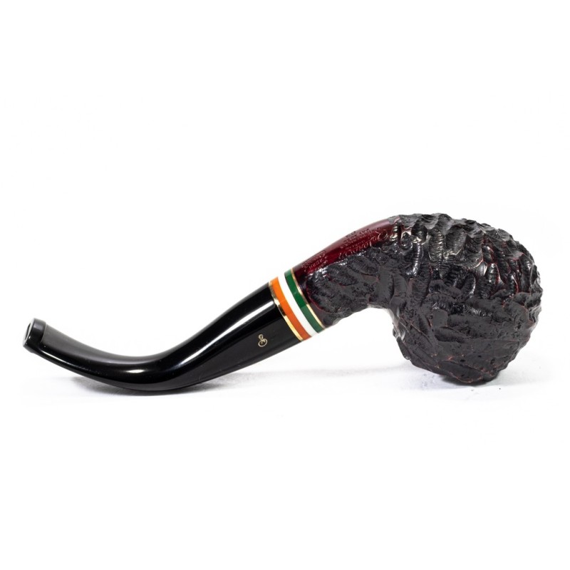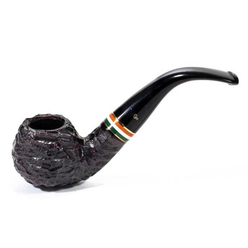 Peterson St. Patrick's Day 2026 Rusticata, Modello 03, Vera in Metacrilato con Tricolore della bandiera Irlandese Racchiusa da due anelli dorati, senza filtro, sacchetto e scatola originale, Made in Ireland.
