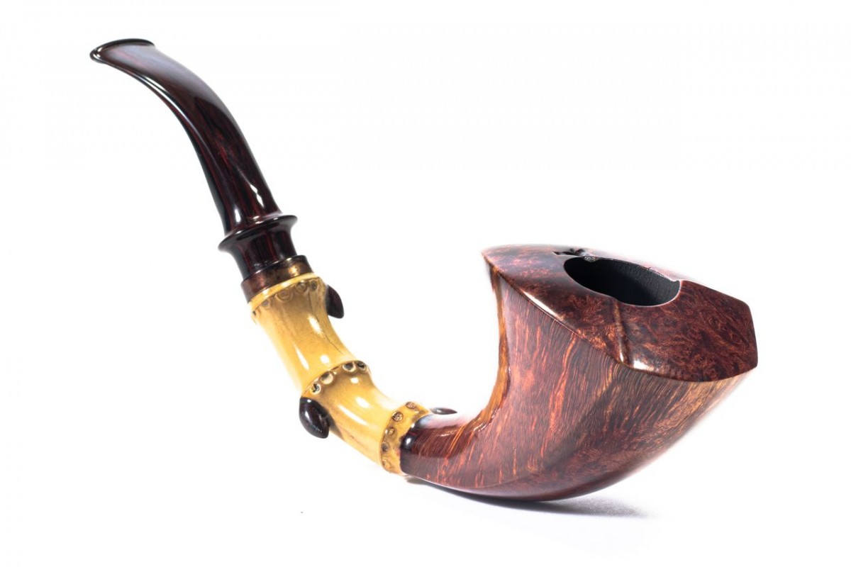 Rafael Arzuaga Liscia, Colore: Marrone, Cannello in Bamboo, inserto in Cumberland, Vera in Rame, forato in curva, senza filtro, Made in Spain.