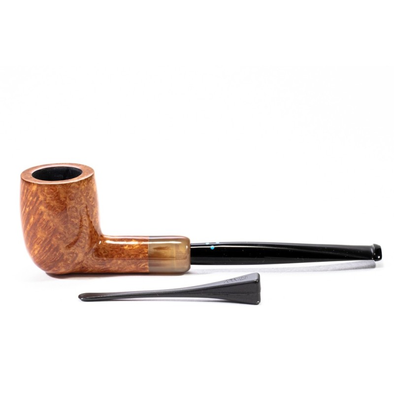 Sasieni 4 Dot Natural Liscia, Colore: Marrone Chiaro, Vera in Corno, Innesto a Flock, Borsa Portapipa Sasieni Inclusa, senza filtro.
