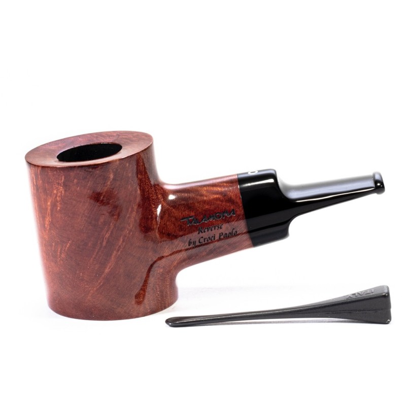 Talamona Calabash Reverse Liscia, Colore: Marrone, bocchino a sella, senza filtro, sacchetto e scatola originale, Made in Italy.