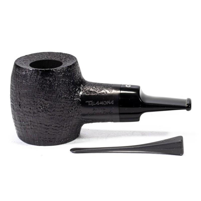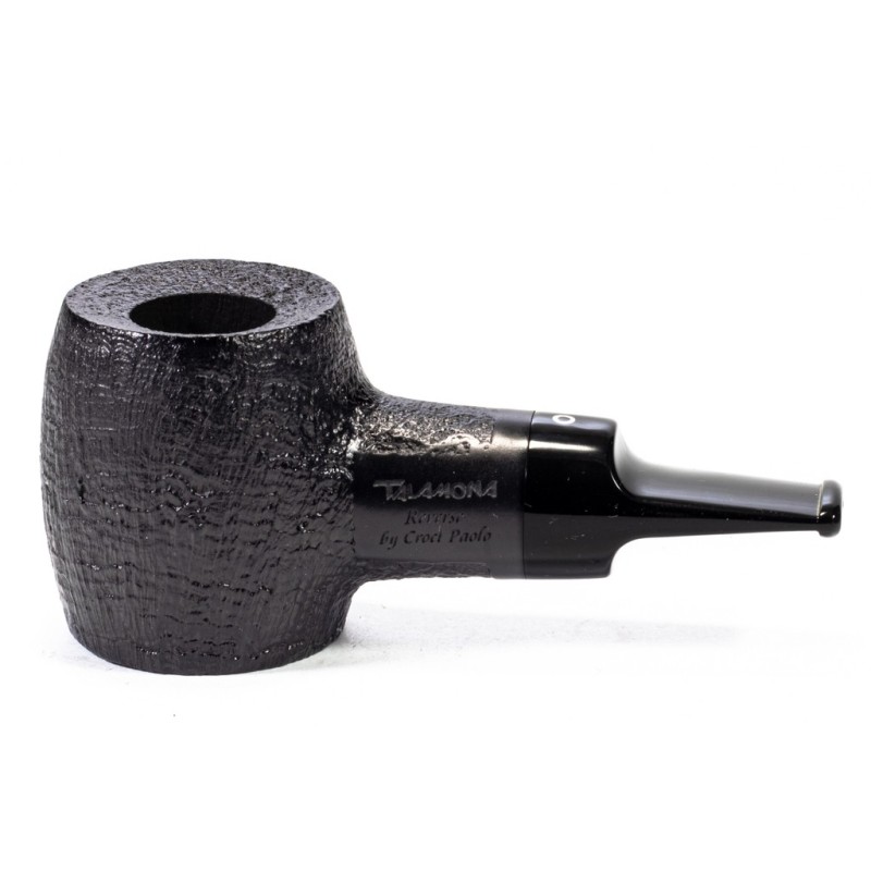 Talamona Calabash Reverse Sabbiata, Colore: Nero, Rim Liscio, bocchino a sella, senza filtro, sacchetto e scatola originale, Made in Italy.