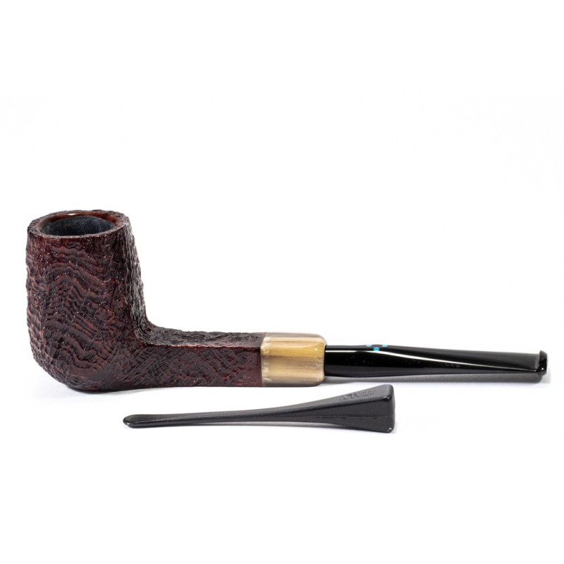 Sasieni 4 Dot Walnut Ruff Sabbiata, Colore: Marrone, Vera in Corno, Innesto a Flock, Borsa Portapipa Sasieni Inclusa, senza filtro.