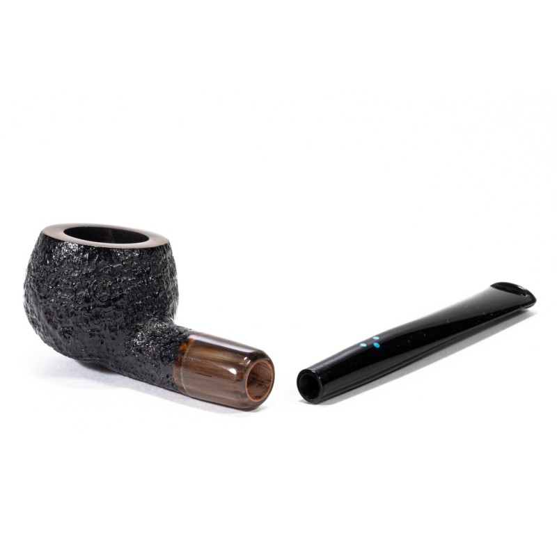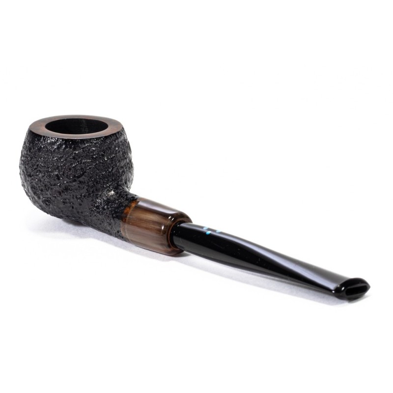 Sasieni 4 Dot Dark Ruff Sabbiata, Colore: Nero, Vera in Corno, Innesto a Flock, Borsa Portapipa Sasieni Inclusa, senza filtro.