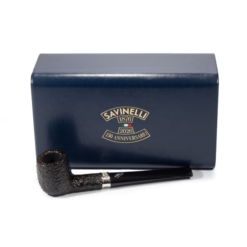 Savinelli 150° Anniversario Giancarlo Rusticata, Colore: Marrone Scuro, Cannello Ovale, Vera in Nichel con incisioni del Logo Savinelli e Anniversario, senza filtro, scatola e sacchetto originale, Made in Italy.