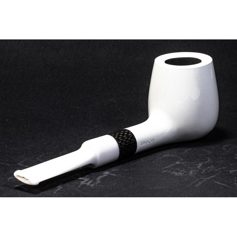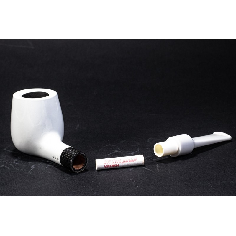 Vauen Edison Liscia, Modello ED 175, Colore: Bianco, Vera in Carbonio, bocchino a sella, filtro 9mm con riduttore, scatola e sacchetto originale con certificato di garanzia, Made in Germany.