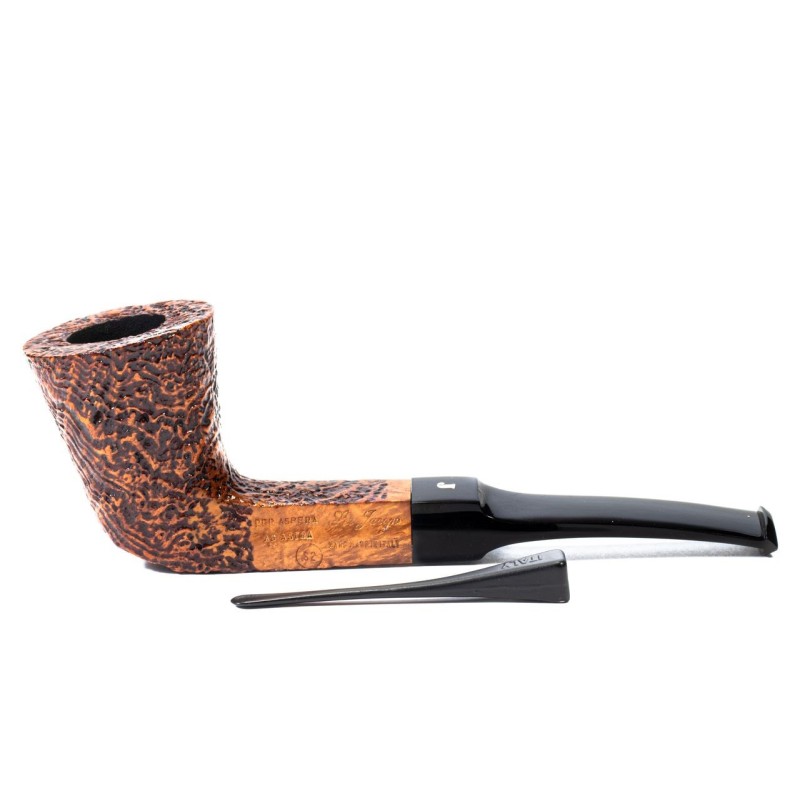 Ser Jacopo Sabbiata S2, Colore: Marrone, Cannello Quadrato, bocchino a sella, senza filtro, scatola e sacchetto originale, Made in Italy.