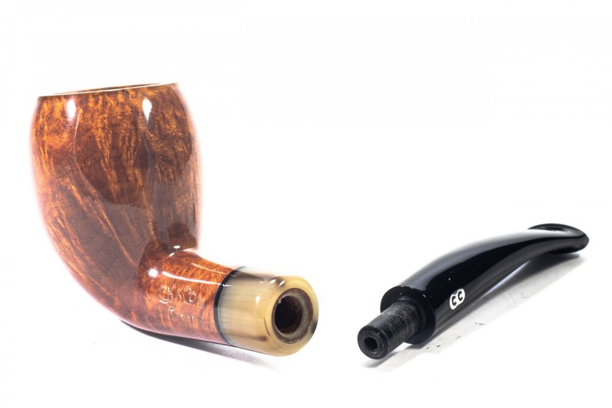 Chacom Olive Horn Liscia, Modello 99, Colore: Marrone, Vera in Corno, senza filtro, sacchetto e scatola originale, Made in France.