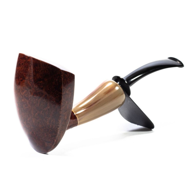 C-Pipe Gruppo 15 Liscia, Handmade, Colore: Marrone, Cannello in Corno, bocchino a sella, senza filtro, Made in Cina.