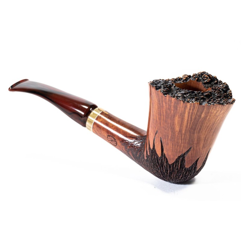 Amorelli Fiammata Naturale, 3 stelle, Rim Rusticato, lavorazione Penna di San Michele alla base del Fornello, inserto in Metacrilato sul bocchino, senza filtro, sacchetto e scatola originale, Made in Italy.