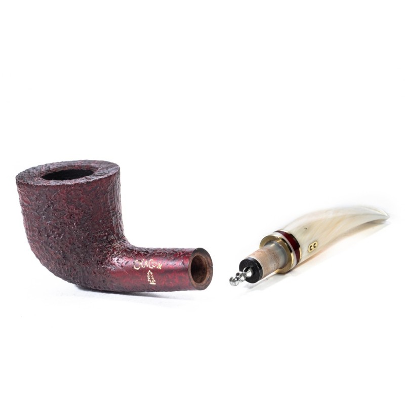 Chacom Noël 2025 Sabbiata, Modello F4, Colore: Rosso Rubino, inserto sul bocchino in Metacrilato e doppia Vera Dorata, Punzonatura con Albero di Natale, filtro 9mm con riduttore, scatola e sacchetto originale, Made in France.