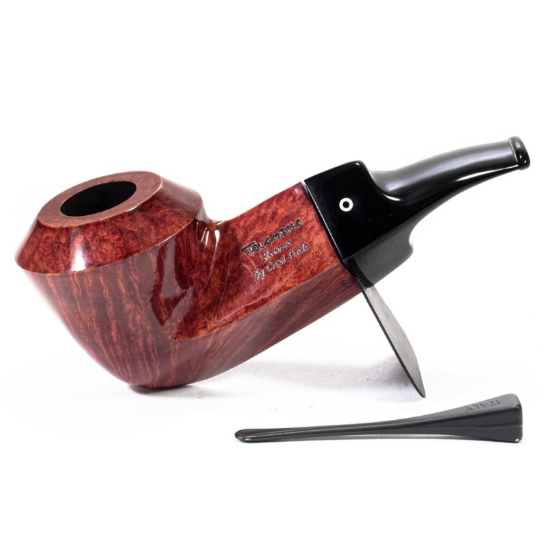 Talamona Calabash Reverse Liscia, Colore: Marrone, Bocchino a sella, senza filtro, sacchetto e scatola originale, Made in Italy.