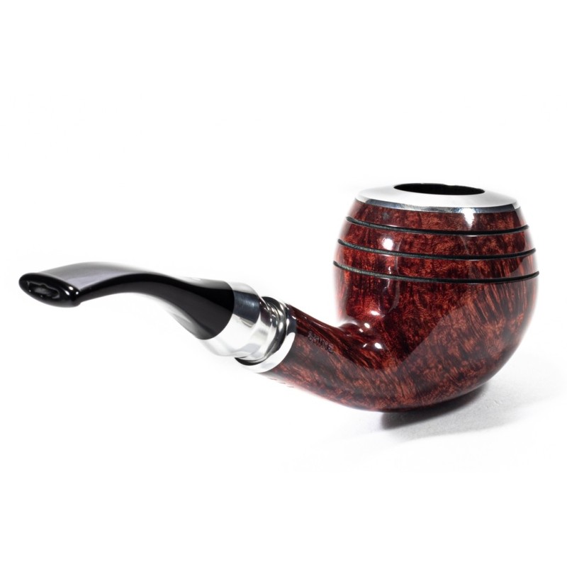Vauen Shine si presenta con una bella radica con un contrasto che ne risalta la forma. L'Anello e la Ghiera insieme alle scanalature sul fornello rendono questa pipa molto gradevole.