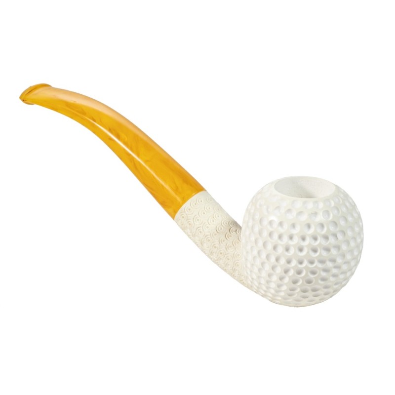 Pipa in Schiuma, Lavorata a mano, Modello B 203 Pallina da Golf, senza filtro, custodia rigida in pelle rossa a misura.