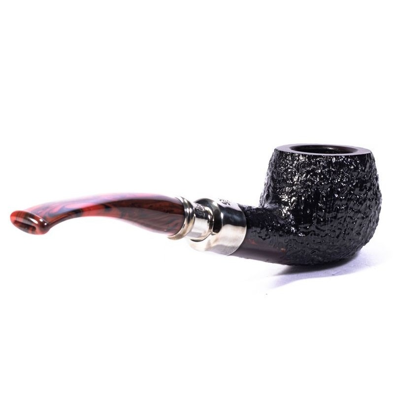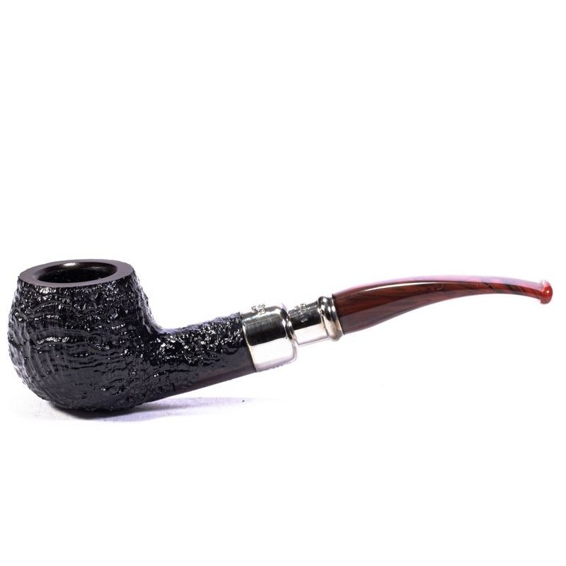 Peterson Newgrange Spigot Sabbiata, Modello 406, Colore: Nero, Rim Liscio, Punzonatura Peterson of Dublin sulla doppia Vera in Argento, innesto a flock, senza filtro, sacchetto e scatola originale.