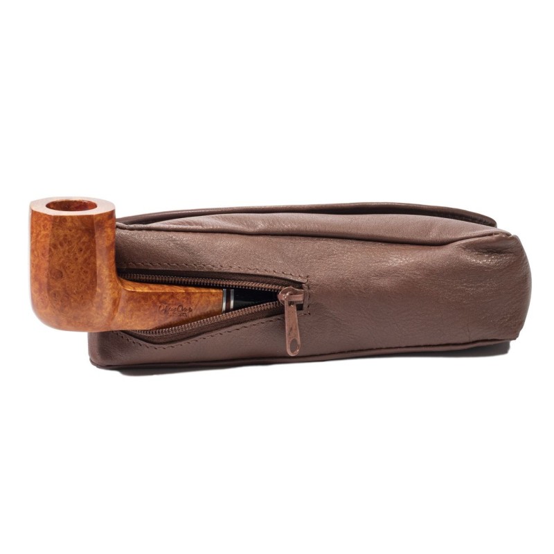 Borsa portapipa/tabacco in pelle a bottone per 1 pipa, 2 cerniere e 1 Taschino. Colore: Cognac.