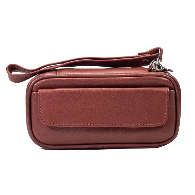 Borsa portapipa in pelle per 2 pipe . 1 zip, 1 taschino esterno, 1 borsa porta tabacco estraibile, porta pigino, Colore: Cognac.