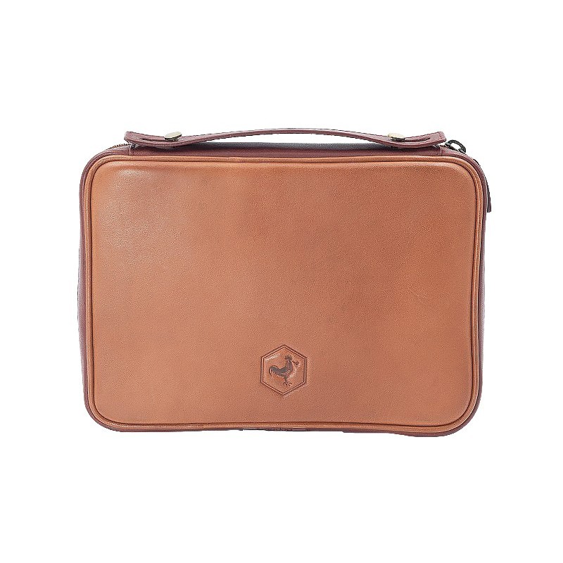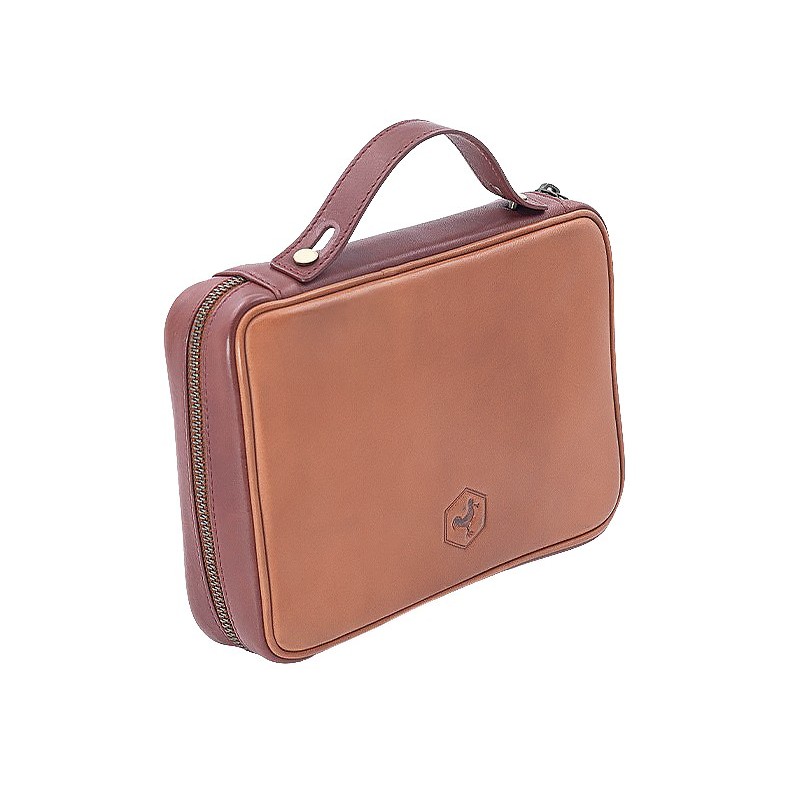 Borsa portapipa e tabacco in pelle per 4 pipe con porta pigino e scovolini, 2 cerniere, 1 Tasca per contenere il tabacco, Colore: Marrone.