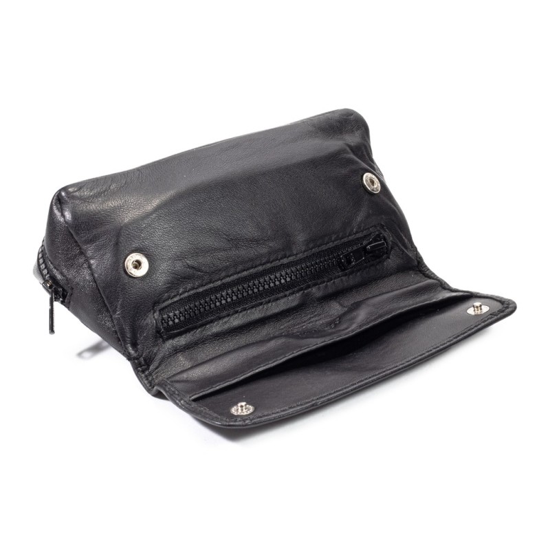 Borsa portapipa/tabacco in pelle per 2 pipe con porta pigino e scovolini, 2 cerniere, Colore: Nero.
