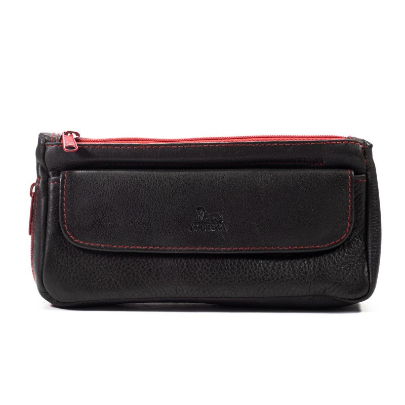 Borsa portapipa/tabacco in pelle per 1 pipa con porta scovolini, 2 cerniere, 1 taschino esterno. Colore: Blu e Rosso.