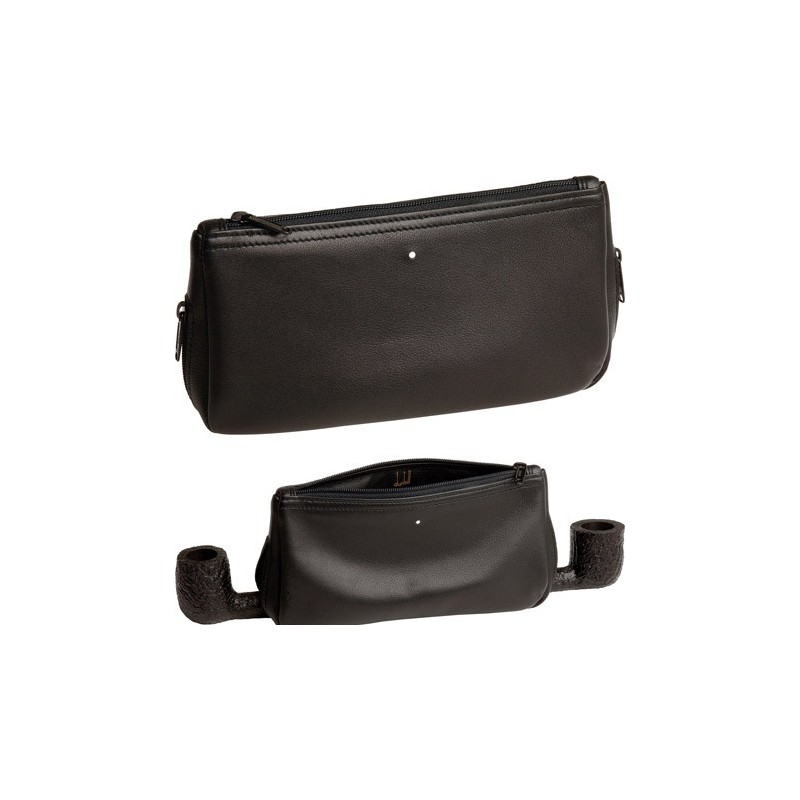 Dunhill The White Spot Compendium Borsa Portapipa in pelle per 2 pipa, 2 scomparti pipe, 1 Scomparto Portatabacco, Colore: Nero.