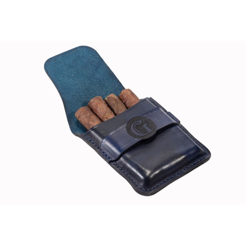 Portasigari Giovannozzi per Toscano in cuoio, Colore: Blu, 4 pezzi.