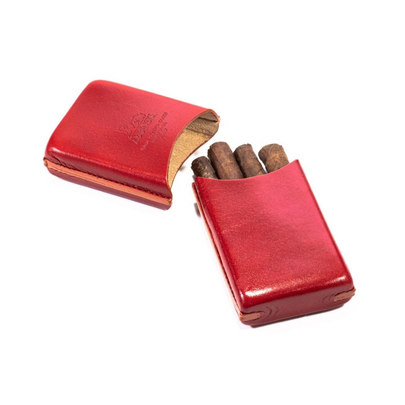 Portasigari Lubinski modello "Quadro" per ammezzati Toscani in cuoio, Colore: Rosso, 4 pezzi.