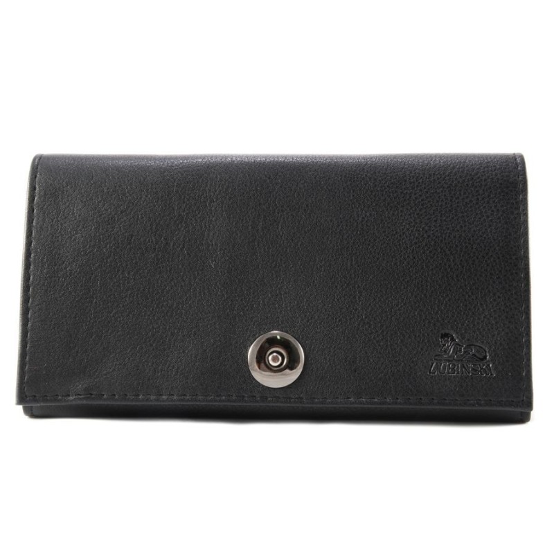 Lubinski portatabacco in pelle con bottone a calamita con taschino portatabacco e porta scovolini, colore: nero.