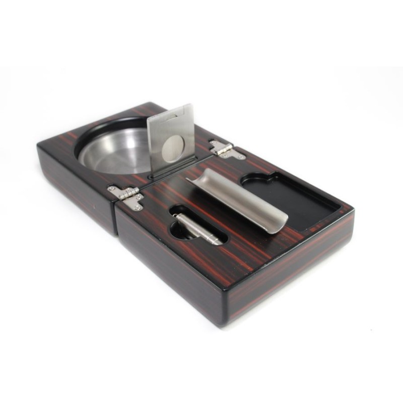 Posacenere sigaro chiudibile colore Marrone, accessori: cutter e bucasigari.