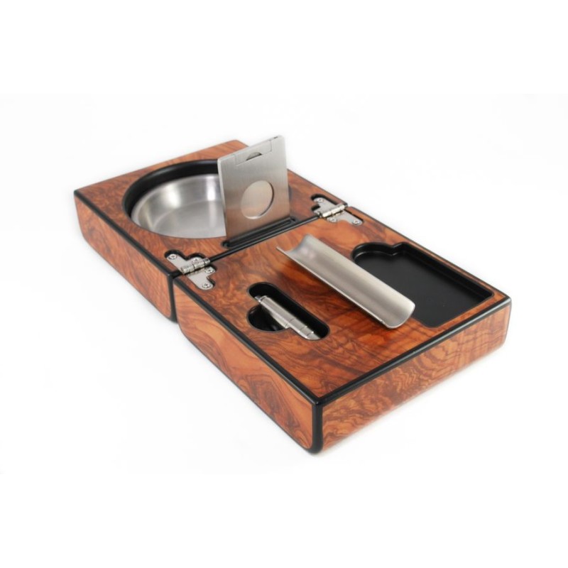 Posacenere sigaro chiudibile colore Marrone chiaro, accessori: cutter e bucasigari.